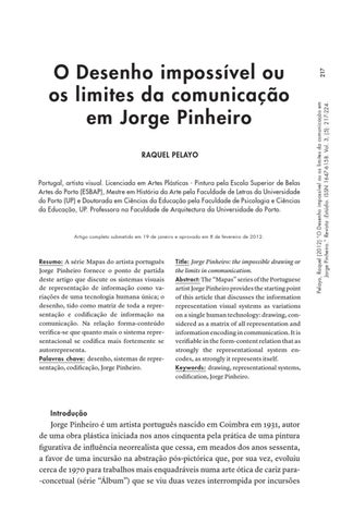 217 Pelayo, Raquel (2012) “O Desenho impossível ou os limites da comunicação em Jorge Pinheiro.” Revista :Estúdio. ISSN 1647-6158. Vol. 3, (5): 217-224.