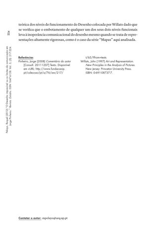 224 Pelayo, Raquel (2012) “O Desenho impossível ou os limites da comunicação em Jorge Pinheiro.” Revista :Estúdio. ISSN 1647-6158. Vol. 3, (5): 217-224.