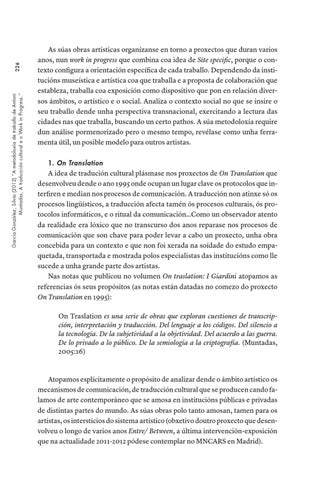 226 García González, Silvia (2012) “A metodoloxía de traballo de Antoni Muntadas, A traducción cultural e o Work in Progress.”