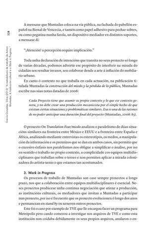 228 García González, Silvia (2012) “A metodoloxía de traballo de Antoni Muntadas, A traducción cultural e o Work in Progress.”