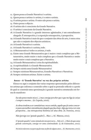 Anexo – A ‘Grande Narrativa’ na voz dos próprios artistas