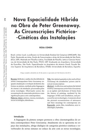 Nova Espacialidade Híbrida na Obra de Peter Greenaway. As Circunscrições Pictórico-Cinéticas das Instalações ROSA COHEN