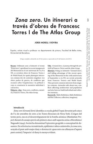 343 Morell i Rovira, Jordi (2012) “Zona zero. Un itinerari a través d’obres de Francesc Torres I de The Atlas Group.” Revista :Estúdio. ISSN 1647-6158. Vol. 3, (5): 343-348.