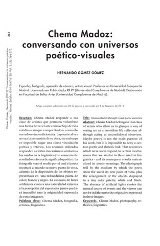 Title: Chema Madoz: through visual-poetic universes Abstract: Chema Madoz belongs to that class