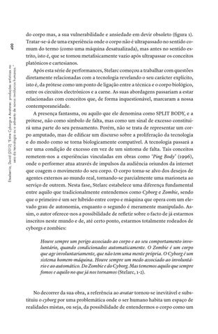 400 Etxeberria, David (2012) “Entre Cyborgs e Avatares: produções artísticas no seio da tecnologia ou o advento de novos invólucros humanos.”