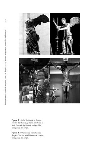 Figura 3 – Izda. Cristo de la Buena Muerte de Huelva, y Dcha. Cristo de la Vera Cruz de Ayamonte, ambos 1941 (imágenes del autor). Figura 4 – Victoria de Samotracia y Ángel Oración en el Huerto de Huelva (imágenes del autor).