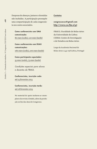 até 28 fevereiro 2013 No material de apoio incluem-se exemplares da revista :Estúdio, além da produção on line das Atas do Congresso.