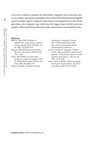 80 Torrezan, Gustavo Henrique (2012) “Elias dos Bonecos: o mundo como resto. Revista :Estúdio. ISSN 1647-6158. Vol. 3, (5): 74-80.