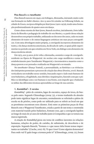 Medeiros, Marina Milito de & Pereira, Sayonara Sousa (2012) “Pina Bausch, de referência mundial ao trabalho social - Kontakthof através das gerações.”