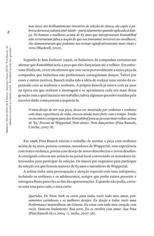 94 Medeiros, Marina Milito de & Pereira, Sayonara Sousa (2012) “Pina Bausch, de referência mundial ao trabalho social - Kontakthof através das gerações.”