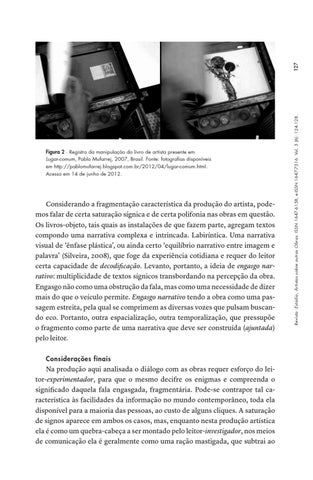 Figura 2 ∙ Registro da manipulação do livro de artista presente em Lugar-comum, Pablo Mufarrej, 2007, Brasil. Fonte: fotografias disponíveis em http://pablomufarrej.blogspot.com.br/2012/04/lugar-comum.html. Acesso em 14 de junho de 2012.
