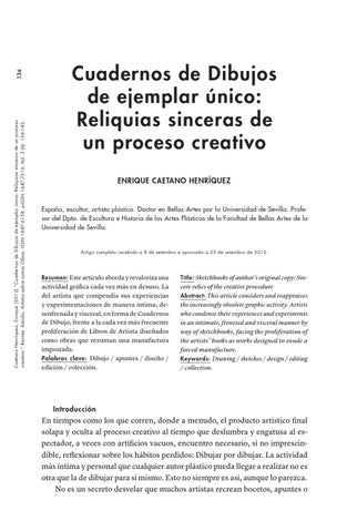 136 Caetano Henríquez, Enrique (2012) “Cuadernos de Dibujos de ejemplar único: Reliquias sinceras de un proceso creativo.” Revista :Estúdio, Artistas sobre outras Obras. ISSN 1647-6158, e-ISSN 1647-7316. Vol. 3 (6): 136-142.