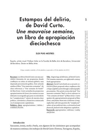 209 Puig Mestres, Eloi (2012) “Estampas del delirio, de David Curto. Une mauvaise semaine, un libro de apropiación dieciochesca.” Revista :Estúdio, Artistas sobre outras Obras. ISSN 1647-6158, e-ISSN 1647-7316. Vol. 3 (6): 209-213.