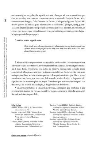 240 Gamito, Maria João (2012) “Pedro Saraiva: vidas de papel: O artista como significante.” Revista :Estúdio, Artistas sobre outras Obras. ISSN 1647-6158, e-ISSN 1647-7316. Vol. 3 (6): 234-240.