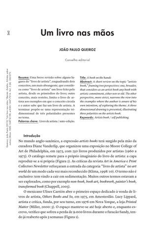 Queiroz, João Paulo (2012) “Um livro nas mãos.”Revista :Estúdio, Artistas sobre outras Obras. ISSN 1647-6158, e-ISSN 1647-7316. Vol. 3 (6): 262-272.