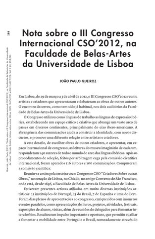 Nota sobre o III Congresso Internacional CSO’2012, na Faculdade de Belas-Artes da Universidade de Lisboa JOÃO PAULO QUEIROZ