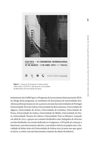instrumento da CAPES que é o Programa de Licenciaturas Internacionais (PLI). Ao abrigo deste programa, os estudantes de licenciatura de universidades brasileiras podem permanecer até 24 meses em uma das universidades de Portugal (Universidade Nova de Lisboa, Universidade da Beira Interior, Universidade do Algarve, Universidade de Aveiro, Universidade de Coimbra, Universidade de Évora, Universidade de Lisboa, Universidade do Minho, Universidade do Porto, Universidade Técnica de Lisboa e Universidade Trás-os-Montes). Lançado em abril de 2012, e graças aos contatos facilitados entre delegados de diversas escolas facilitados em sessão dedicada no Congresso, o PLI pôde já começar a funcionar, com interessantes adesões, com efeitos visíveis no próprio ano: a Faculdade de Belas-Artes da Universidade de Lisboa veio, já neste ano que agora se inicia, a contar com um interessante conjunto de alunos brasileiros.