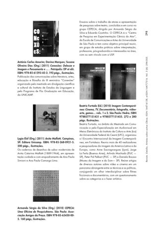António Carlos Amorim; Davina Marques; Susana Oliveira Dias (Org.) (2011) Conexões: Deleuze e Imagem e Pensamento e … . Petrópolis: DP et alii. ISBN: 978-85-61593-45-2. 192 págs., ilustrações. Publicação das comunicações sobre literatura, artes, educação e filosofia do III seminário “Conexões” organizado pelo mestrado em divulgação científica e cultural do Instituto de Estudos da Linguagem e pelo Programa de Pós Graduação em Educação, da UNICAMP.