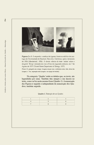 Na categoria ‘Quadro’ estão as tabelas que, ao invés, são legendadas por cima. Também têm sempre a sua âncora no texto, como se faz nesta mesma frase (Quadro 1). A numeração das Figuras é seguida e independente da numeração dos Quadros, também seguida. Quadro 1. Exemplo de um Quadro. 1