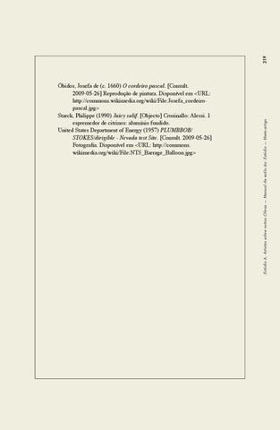Óbidos, Josefa de (c. 1660) O cordeiro pascal. [Consult. 2009-05-26] Reprodução de pintura. Disponível em <URL: http://commons.wikimedia.org/wiki/File:Josefa_cordeiropascal.jpg> Starck, Philippe (1990) Juicy salif. [Objecto] Crusinallo: Alessi. 1 espremedor de citrinos: alumínio fundido. United States Department of Energy (1957) PLUMBBOB/ STOKES/dirigible - Nevada test Site. [Consult. 2009-05-26] Fotografia. Disponível em <URL: http://commons. wikimedia.org/wiki/File:NTS_Barrage_Balloon.jpg>