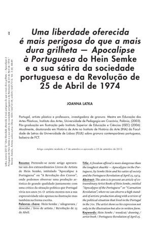 Uma liberdade oferecida é mais perigosa do que a mais dura grilheta — Apocalipse à Portuguesa do Hein Semke e a sua sátira da sociedade portuguesa e da Revolução de 25 de Abril de 1974 JOANNA LATKA