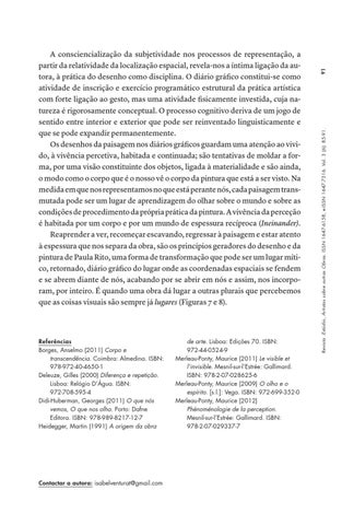 Referências Borges, Anselmo (2011) Corpo e transcendência. Coimbra: Almedina. ISBN: 978-972-40-4650-1 Deleuze, Gilles (2000) Diferença e repetição. Lisboa: Relógio D’Água. ISBN: 972-708-595-4 Didi-Huberman, Georges (2011) O que nós vemos, O que nos olha. Porto: Dafne Editora. ISBN: 978-989-8217-12-7 Heidegger, Martin (1991) A origem da obra