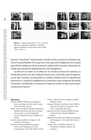 138 Carvalho, Yuly Marty Locatto de (2013) “La imagen del paisaje como eje central de representación en la obra de la artista Paula Almozara.” Revista :Estúdio, Artistas sobre outras Obras. ISSN 1647-6158, e-ISSN 1647-7316. Vol. 4 (8): 132-138.