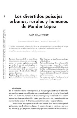 188 Torner, María Betrán (2013) “Los divertidos paisajes urbanos, rurales y humanos de Maider López.” Revista :Estúdio, Artistas sobre outras Obras. ISSN 1647-6158, e-ISSN 1647-7316. Vol. 4 (8): 188-194.
