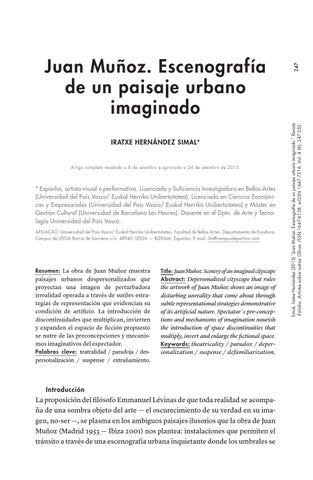 247 Simal, Iratxe Hernández (2013) “Juan Muñoz. Escenografía de un paisaje urbano imaginado.” Revista :Estúdio, Artistas sobre outras Obras. ISSN 1647-6158, e-ISSN 1647-7316. Vol. 4 (8): 247-252.