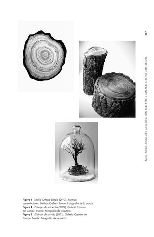 Figura 3 ∙ María Ortega Estepa (2013). Nuevas constelaciones. Neilson Gallery. Fuente: Fotografía de la autora. Figura 4 ∙ Paisajes de mil vidas (2009). Galería Carmen del Campo. Fuente: Fotografía de la autora. Figura 5 ∙ El árbol de la vida (2012). Galería Carmen del Campo. Fuente: Fotografía de la autora.