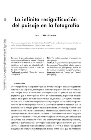 Tejo, Carlos (2013) “La infinita resignificación del paisaje en la fotografía.” Revista :Estúdio, Artistas sobre outras Obras. ISSN 1647-6158, e-ISSN 1647-7316. Vol. 4 (8): 320-326.