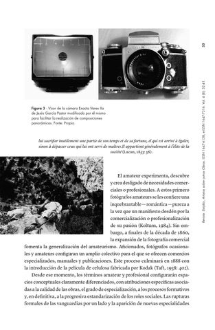 El amateur experimenta, descubre y crea desligado de necesidades comerciales o profesionales. A estos primero fotógrafos amateurs se les confiere una inquebrantable — romántica — pureza a la vez que un manifiesto desdén por la comercialización o profesionalización de su pasión (Kolturn, 1984). Sin embargo, a finales de la década de 1860, la expansión de la fotografía comercial fomenta la generalización del amateurismo. Aficionados, fotógrafos ocasionales y amateurs configuran un amplio colectivo para el que se ofrecen comercios especializados, manuales y publicaciones. Este proceso culminará en 1888 con la introducción de la película de celulosa fabricada por Kodak (Taft, 1938: 402). Desde ese momento, los términos amateur y profesional configurarán espacios conceptuales claramente diferenciados, con atribuciones específicas asociadas a la calidad de las obras, el grado de especialización, a los procesos formativos y, en definitiva, a la progresiva estandarización de los roles sociales. Las rupturas formales de las vanguardias por un lado y la aparición de nuevas especialidades