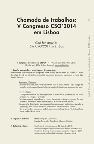 369 :Estúdio 8, Artistas sobre outras Obras — Chamada de trabalhos: V Congresso CSO’2014 em Lisboa