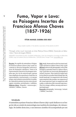 42 Reis, Vítor Manuel Guerra dos (2013) “Fumo, Vapor e Lava: as Paisagens Incertas de Francisco Afonso Chaves (1857-1926).” Revista :Estúdio, Artistas sobre outras Obras. ISSN 1647-6158, e-ISSN 1647-7316. Vol. 4 (8): 42-51.