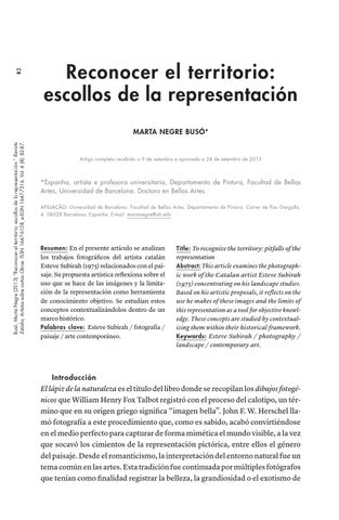 Busó, Marta Negre (2013) “Reconocer el territorio: escollos de la representación.” Revista :Estúdio, Artistas sobre outras Obras. ISSN 1647-6158, e-ISSN 1647-7316. Vol. 4 (8): 82-87.