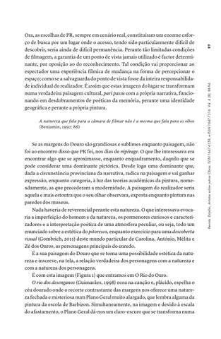 Ora, as escolhas de PR, sempre em cenário real, constituíram um enorme esforço de busca por um lugar onde o acesso, tendo sido particularmente difícil de descobrir, seria ainda de difícil permanência. Perante tão limitadas condições de filmagem, a garantia de um ponto de vista jamais utilizado é factor determinante, por oposição ao do reconhecimento. Tal condição vai proporcionar ao espectador uma experiência fílmica de mudança na forma de percepcionar o espaço; como se a salvaguarda do ponto de vista fosse da inteira responsabilidade individual do realizador. É assim que estas imagens do lugar se transformam numa verdadeira paisagem cultural, pari passu com a própria narrativa, funcionando em desdobramentos de poéticas da memória, perante uma identidade geográfica e perante a própria pintura.