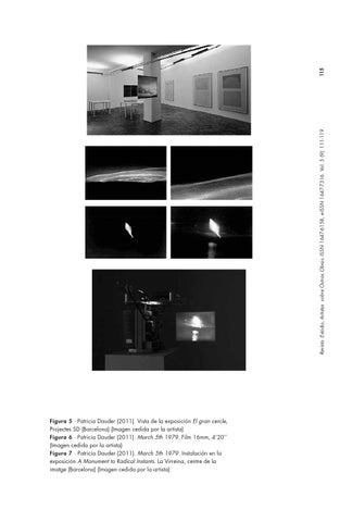 Figura 5 ∙ Patricia Dauder (2011). Vista de la exposición El gran cercle, Projectes SD (Barcelona) (Imagen cedida por la artista) Figura 6 ∙ Patricia Dauder (2011). March 5th 1979. Film 16mm, 4’20’’ (Imagen cedida por la artista) Figura 7 ∙ Patricia Dauder (2011). March 5th 1979. Instalación en la exposición A Monument to Radical Instants. La Virreina, centre de la imatge (Barcelona) (Imagen cedida por la artista)
