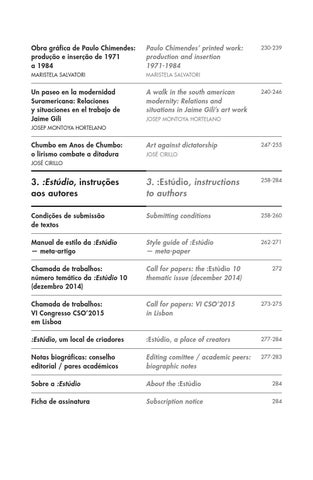 Chamada de trabalhos: número temático da :Estúdio 10 (dezembro 2014)