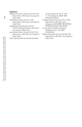 Referências Balthasar van der Ast. [Consult. 2014,01,25] Disponível em <URL: http://www.wga.hu/ index1.html> David Bailly. [Consult. 2014, 01, 25] Disponível em <URL: http://www.wga.hu/ index1.html> Jean-Baptist-Siméon Chardin. [Consult. 2014,01,25] Disponível em <URL: http:// www.wga.hu/index1.html> Juan Sanchez Cótan. [Consult. 2014,01,25] Disponível em <URL: http://www.wga.hu/ index1.html> Sartre, Jean-Paul (2013). O Idiota da Família,