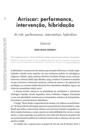 At risk: performance, intervention, hybridism Editorial João Paulo Queiroz*