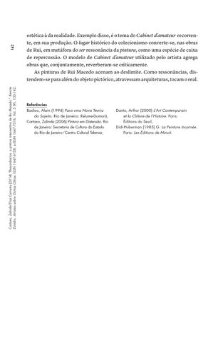 142 Cartaxo, Zalinda Elisa Carneiro (2014) “Ressonâncias: a pintura interventiva de Rui Macedo.” Revista :Estúdio, Artistas sobre Outras Obras. ISSN 1647-6158, e-ISSN 1647-7316. Vol. 5 (9): 135-142.