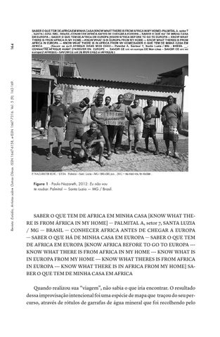 SABER O QUE TEM DE AFRICA EM MINHA CASA [KNOW WHAT THERE IS FROM ÁFRICA IN MY HOME] — PALMITAL A, setor 7, SANTA LUZIA / MG — BRASIL — CONHECER AFRICA ANTES DE CHEGAR A EUROPA — SABER O QUE HÁ DE MINHA CASA EM EUROPA — SABER O QUE TEM DE AFRICA EM EUROPA [KNOW AFRICA BEFORE TO GO TO EUROPA --KNOW WHAT THERE IS FROM AFRICA IN MY HOME --- KNOW WHAT IS IN EUROPA FROM MY HOME --- KNOW WHAT THERES IS FROM AFRICA IN EUROPA --- KNOW WHAT THERE IS IN AFRICA FROM MY HOME] SABER O QUE TEM DE MINHA CASA EM AFRICA Quando realizou sua “viagem”, não sabia o que iria encontrar. O resultado dessa improvisação intencional foi uma espécie de mapa que traçou do seu percurso, através de rótulos de garrafas de água mineral que foi recolhendo pelo