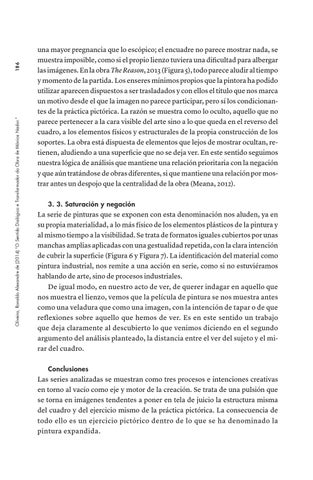 Conclusiones Las series analizadas se muestran como tres procesos e intenciones creativas en torno al vacío como eje y motor de la creación. Se trata de una pulsión que se torna en imágenes tendentes a poner en tela de juicio la estructura misma del cuadro y del ejercicio mismo de la práctica pictórica. La consecuencia de todo ello es un ejercicio pictórico dentro de lo que se ha denominado la pintura expandida.