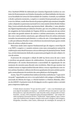 215 Revista :Estúdio, Artistas sobre Outras Obras. ISSN 1647-6158, e-ISSN 1647-7316. Vol. 5 (9): 214-221.