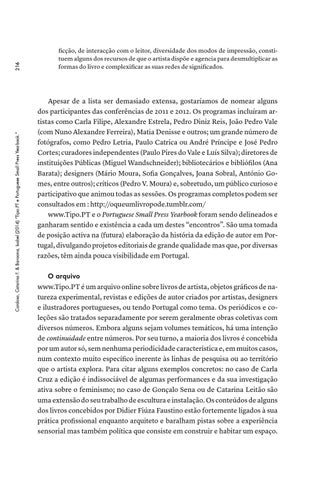 216 Cardoso, Catarina F. & Baraona, Isabel (2014) “Tipo.PT e Portuguese Small Press Yearbook.”