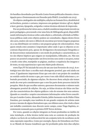 217 Revista :Estúdio, Artistas sobre Outras Obras. ISSN 1647-6158, e-ISSN 1647-7316. Vol. 5 (9): 214-221.