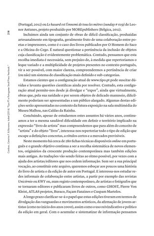 218 Cardoso, Catarina F. & Baraona, Isabel (2014) “Tipo.PT e Portuguese Small Press Yearbook.”