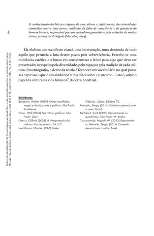 84 Pereira, Cláudia Matos (2014) “Povos Indígenas em Quadrinhos: o olhar etnográfico-semiótico do artista brasileiro Sérgio Macedo.” Revista :Estúdio, Artistas sobre Outras Obras. ISSN 1647-6158, e-ISSN 1647-7316. Vol. 5 (9): 79-84.