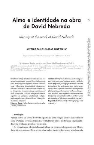 tween the concepts of soul and identity with the work of Spanish photographer David Nebreda to highlight the uniqueness and importance of this artistic production in to contemporary photographic aesthetic as one of the most poignant, realistic and impressive records of contemporary existential condition for the search the meaning of life supported only in the body. Keywords: Nebreda / body / photography / soul / identity.
