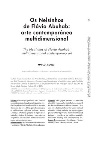 157 Rizolli, Marcos (2015) “Os Nelsinhos de Flávio Abuhab: arte contemporânea multidimensional.” Revista :Estúdio, Artistas sobre Outras Obras. ISSN 1647-6158, e-ISSN 1647-7316. Vol. 6 (11): 157-164.